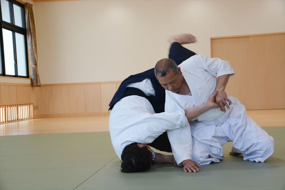 - ▸支部長は、故錦戸無光先生に、福岡県筑紫野山中にて、平成15年からおよそ7年にわたって直接指導を受けました。現在、錦戸先生・甲斐田先生から伝わった大東流合気柔術を稽古生の各ステージに合わせてお伝えしています。